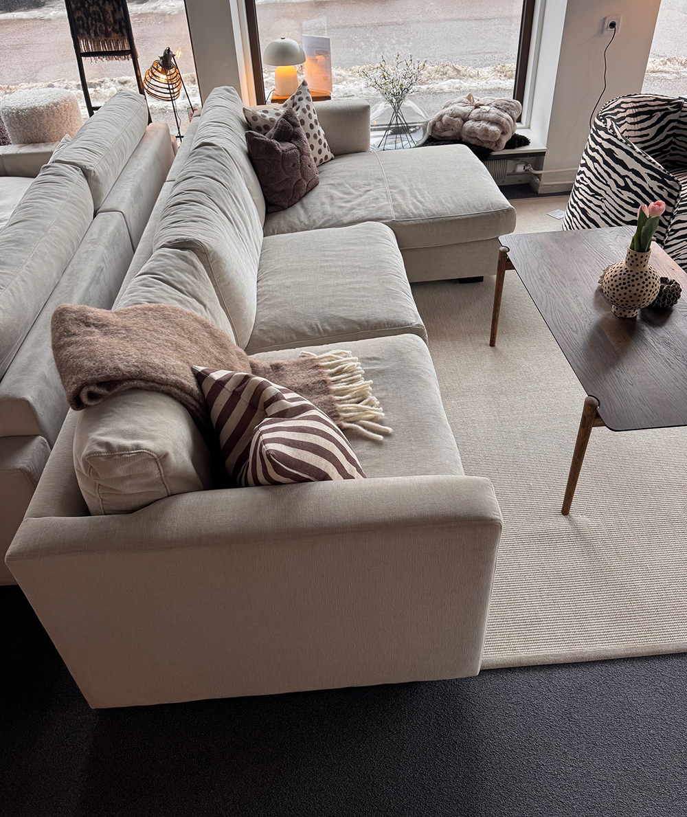 Mjukt och mysigt, det blir det i denna modell. I COZY somnar du lätt i framför tv:n. Ny modell i Zoffans showroom. COZY är en byggbar loungesoffa från vår danska leverantör. Man vill bara kasta sig i soffan och krypa upp med en go pläd o chilla, komforten är fantastisk, måste upplevas.