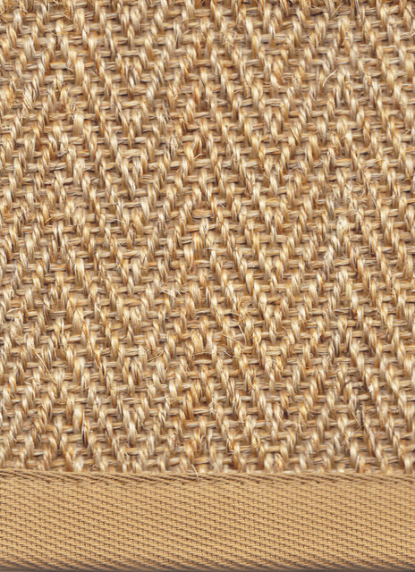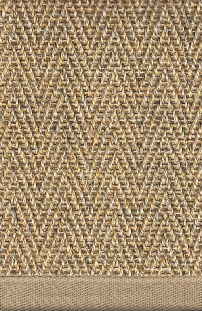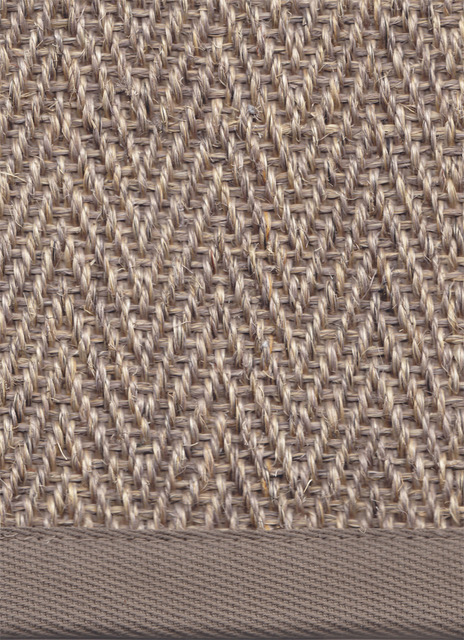 Den höga slitstyrkan hos naturlig sisal gör mattan praktisk och hållbar. Tuna har ett insytt halkskyddad av latex och avslutas med en ton-i-ton-bandkant.